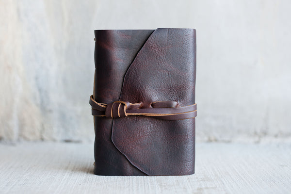 The Espresso Lucca is the perfect strapped journal for carrying every day. The leather is a gorgeous dark chocolate brown bison with a bit of texture. It is 5' x 7.5", and has plenty of space for writing, illustrating, and mounting...