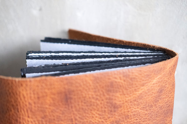 The Sorrento Photo Album conveniently holds two 4x6 or 5x7 photos per page, which means about 100 photos can fit in this album. This 7.5” x 11” photo album contains 52 pages of archival, hand-torn black paper. Interspersed between those...