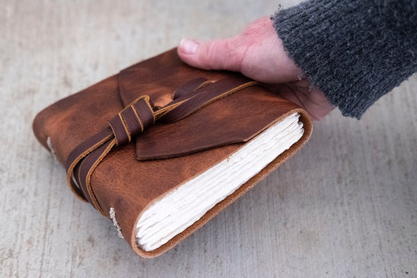 The Lucca Journal has long been our most popular size journal for carrying every day.  There is plenty of space for writing, illustrating, and mounting standard size photos and postcards.